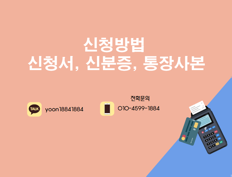 신청서 통장사본 신분증사본 세가지를 준비하시면 되시고 힘든시기에 pg (무선단말기)로